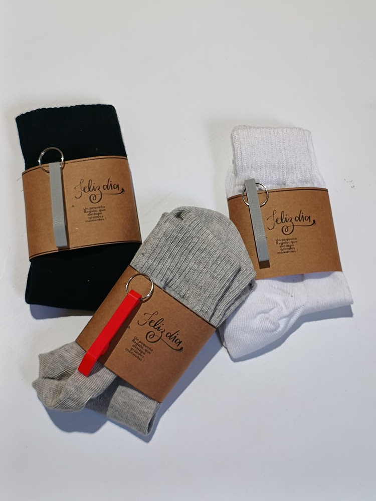 3 medias 3/4 de algodón + 3 llaveros 3D destapador de buenos momentos $7.500 final / $2.500 por unidad