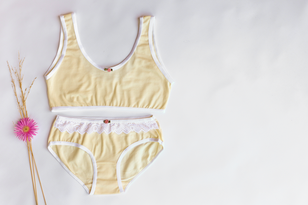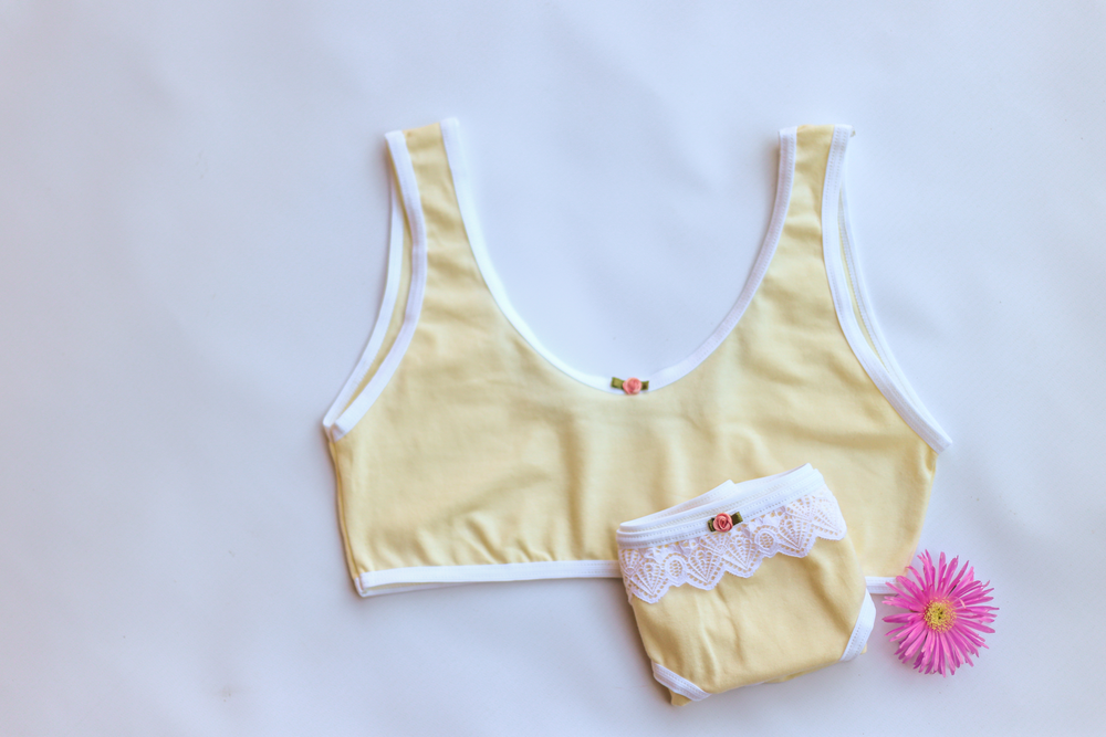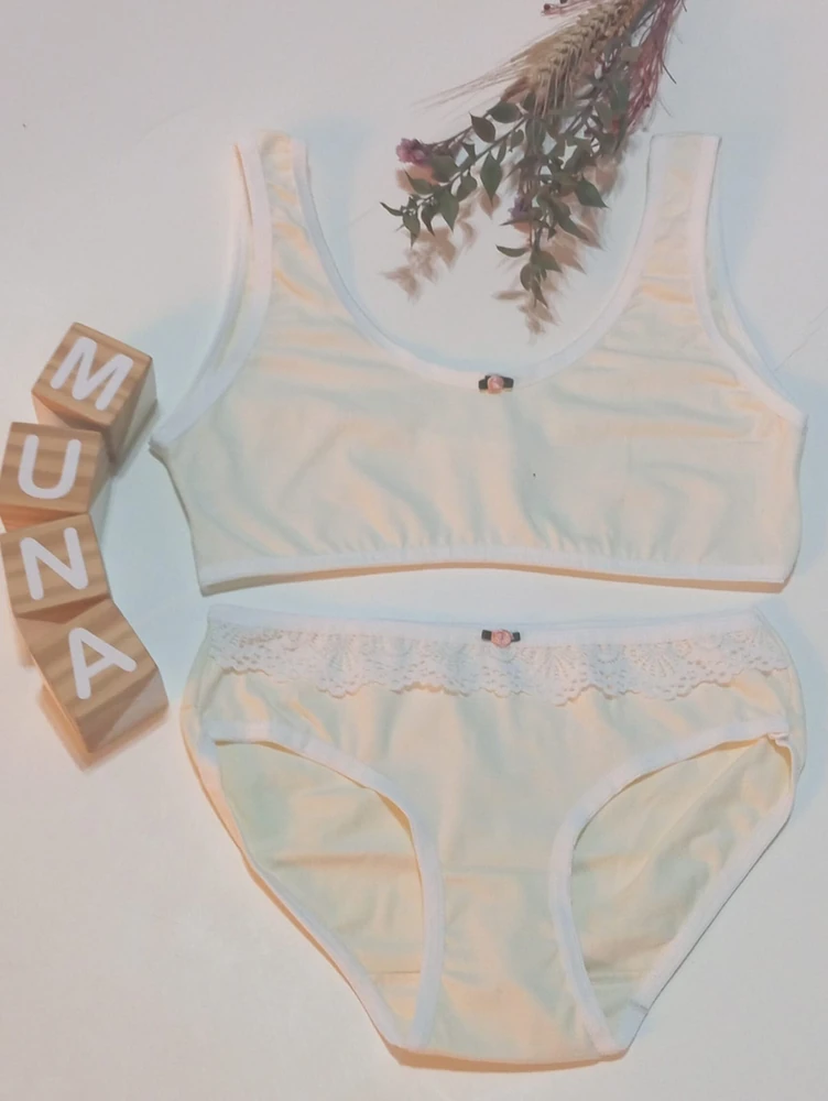 💫Top y Bombacha confeccionado en algodon lycra , con detalle de puntilla y flor hecha a mano con cinta de raso.