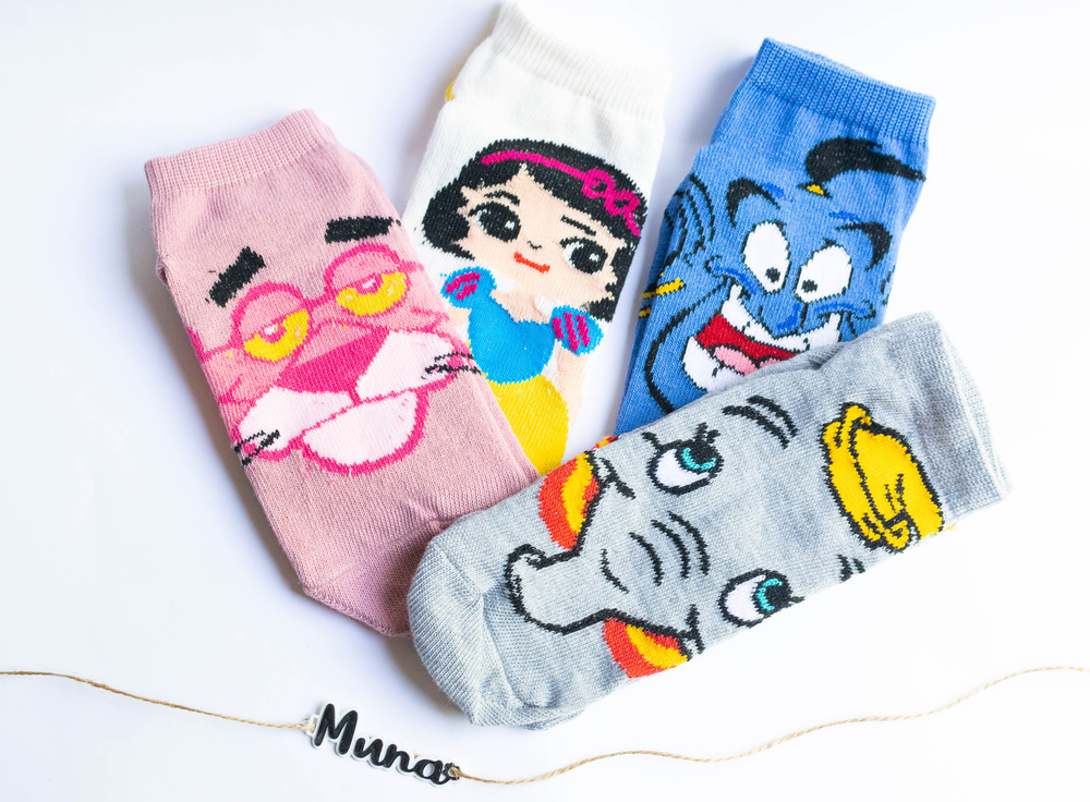 ♥Incluye: 4 bombachas de algodon calidad premium surtida de talle del 8 al 16 4 medias de algodon con personajes clasicos surtidos. 1 de cada modelo packaging bolsa Ziploc Reutilizble
